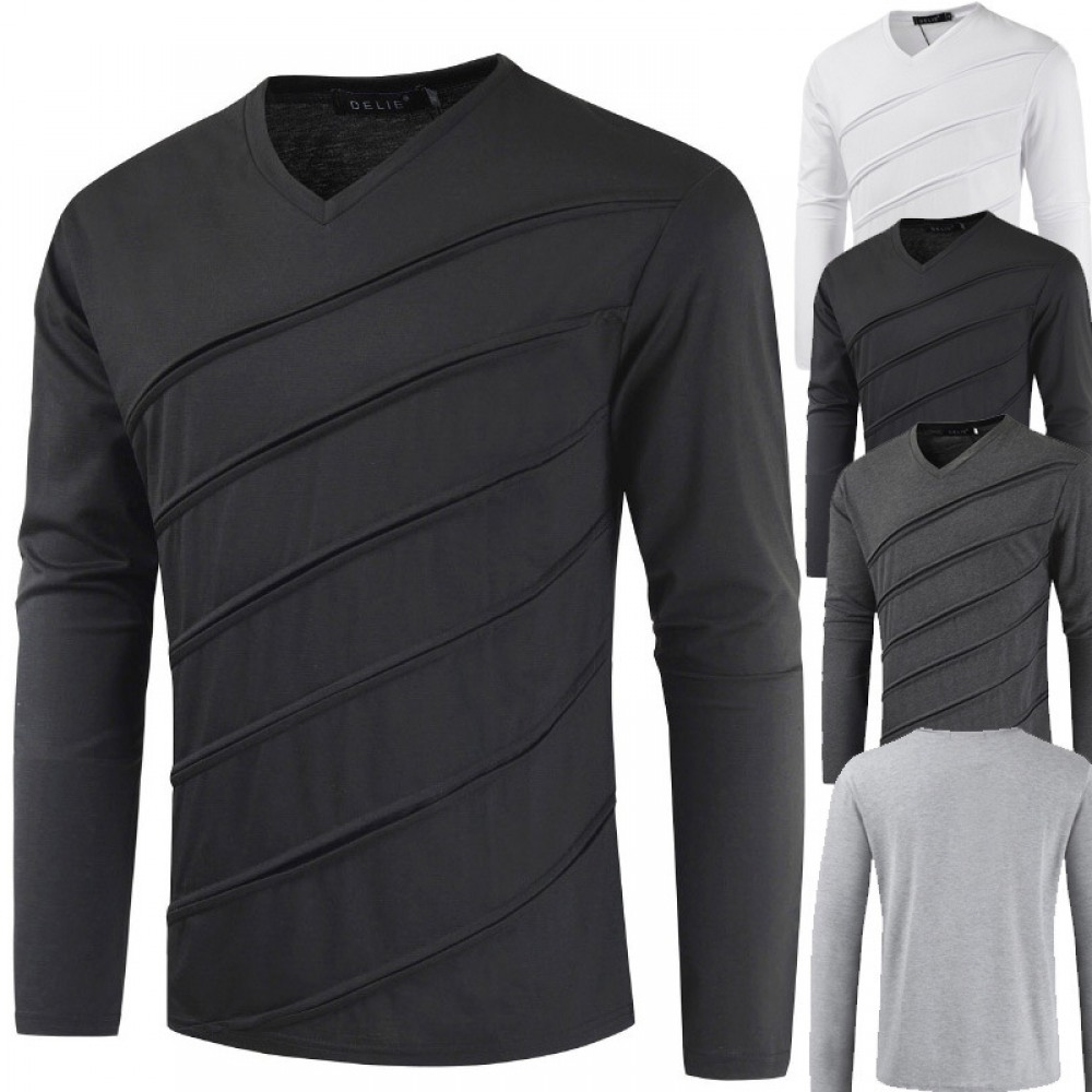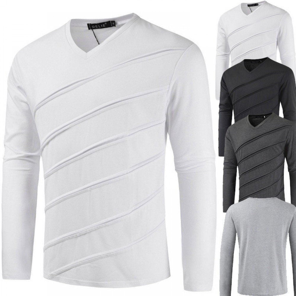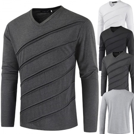 Men's Plus Size Plus Velvet Warm Long-Sleeved V-Neck T-Shirt Base Shirt