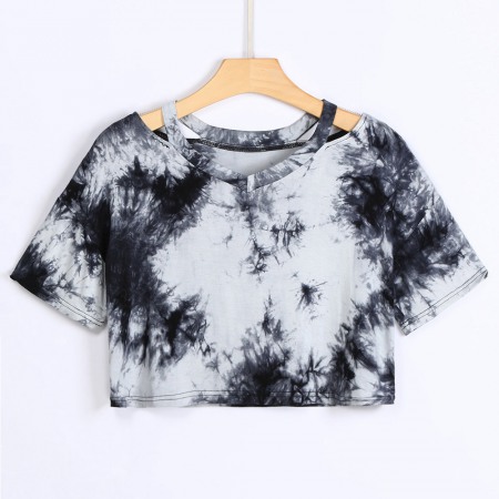 Ink Printing Gradient Mercerized Cotton V-Neck Short T-Shirt