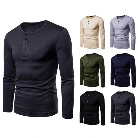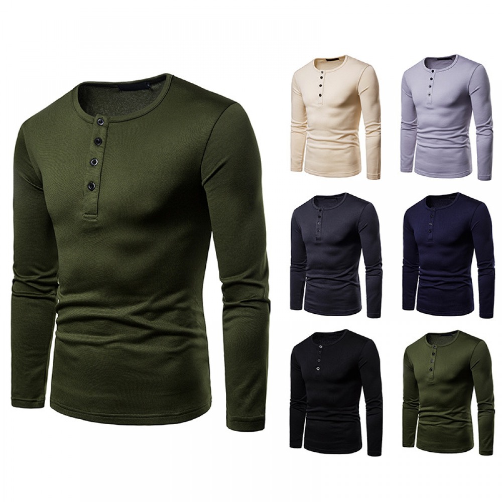 Men's Plus Size Plus Velvet Warm Henley Collar Long-Sleeved T-Shirt Bottoming Shirt