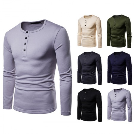 New Fashion Men's Henry Collar Design Short Sleeve T-Shirt
