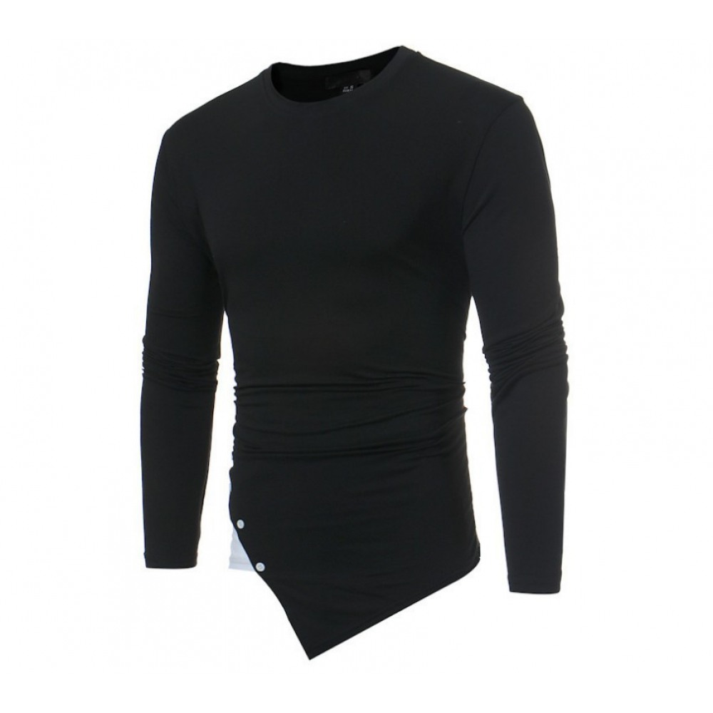 New Men's T-Shirt Clothing Long-Sleeved Irregular Hem Decorative Button Solid Color Long-Sleeved Cotton