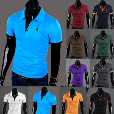 New Summer Men's Short-Sleeved T-Shirt Mens Contrast Striped Slim Casual T-Shirt