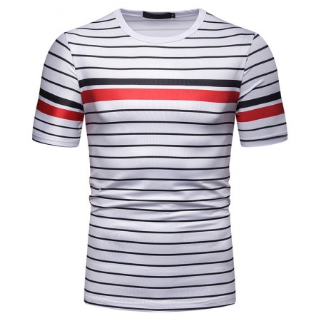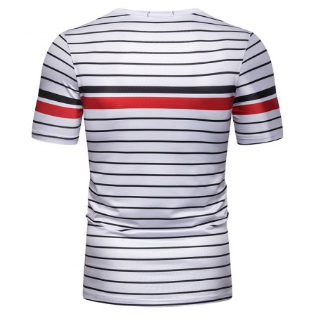 New Summer Men's Short-Sleeved T-Shirt Men's Contrast Striped Slim Casual T-Shirt