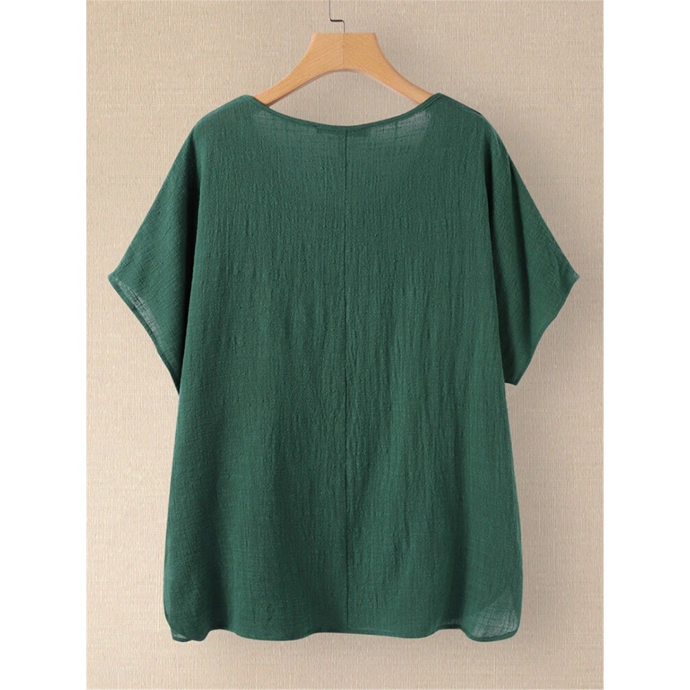 Summer New Style V-Neck Short-Sleeved T-Shirt Hot Loose and Thin Plus Size Sleeve Shirt